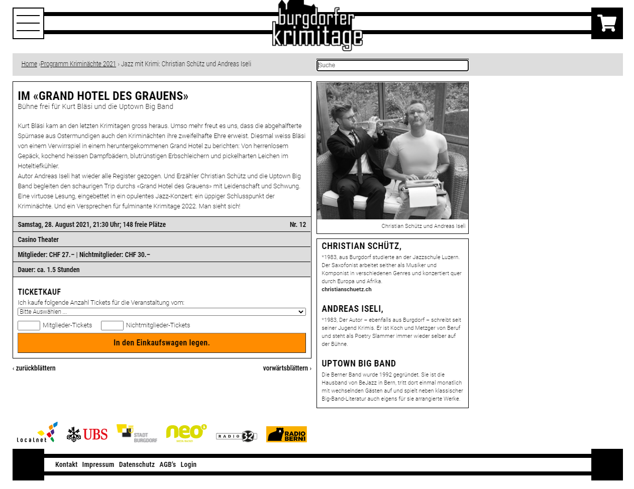 Autor Andreas Iseli hat wieder alle Register gezogen. Und Erzähler Christian Schütz und die Uptown Big Band begleiten den schaurigen Trip durchs «Grand Hotel des Grauens» mit Leidenschaft und Schwung. Eine virtuose Lesung, eingebettet in ein opulentes Jazz-Konzert!